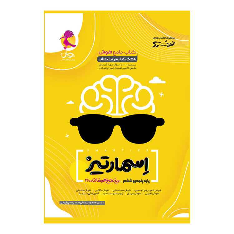 کتاب اسمارتیز شامل بیش از 5400 سوال چهارگزینه ای می باشد همچنین دارای: هوش کلامی ، هوش تجسمی، هوش منطقی ،هوش تجربی، هوش دقت و تمرکز آزمون های استاندارد آزمون های شبیه ساز است