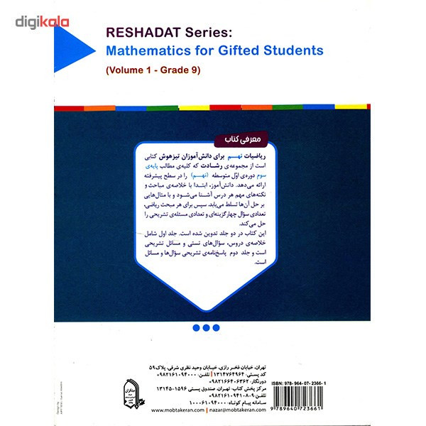 - از مجموعهی رشادت - آموزش پیشرفته و تمرین - پرسشهای چند گزینهای با پاسخ تشریحی - سوالهای منتخب تیزهوشان - نکات کلیدی - دارای صفحات مصور